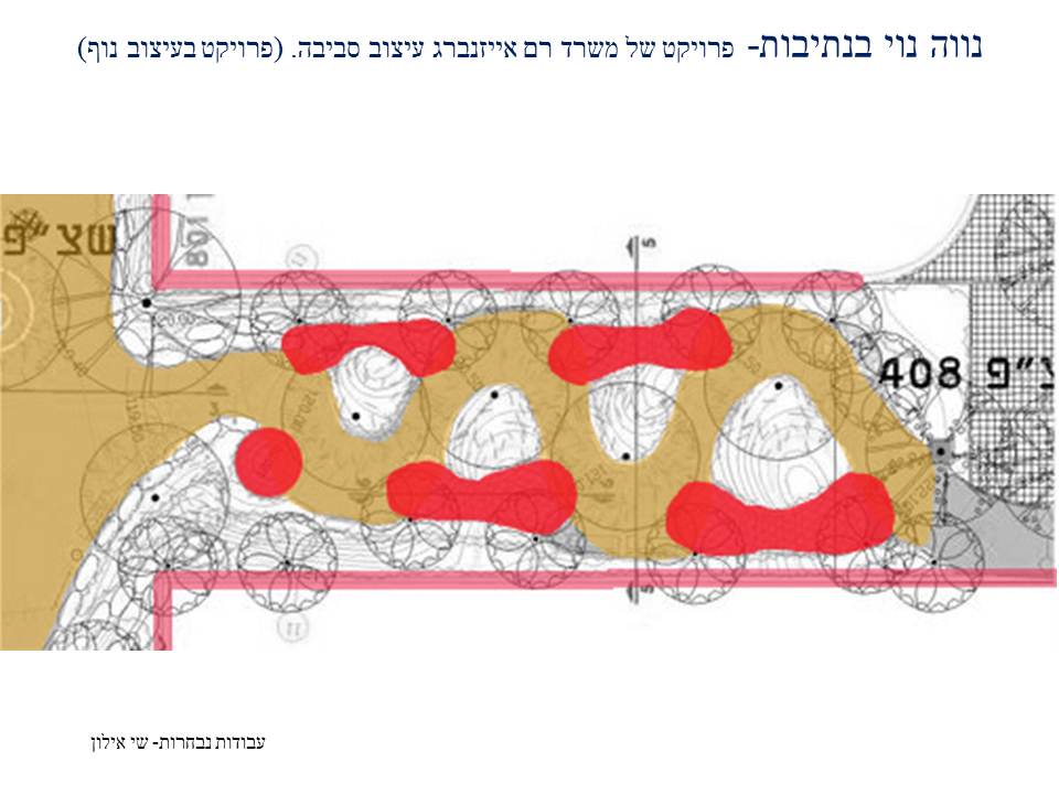 פרויקט של משרד "רם איזנברג עיצוב סביבה". תכנון השכונה נתן מענה לילדים שילכו בעתיד דרך המעבר התת קרקעי, לקרית החינוך המתוכננת בשכונת החורש שמעבר לכביש הראשי.
